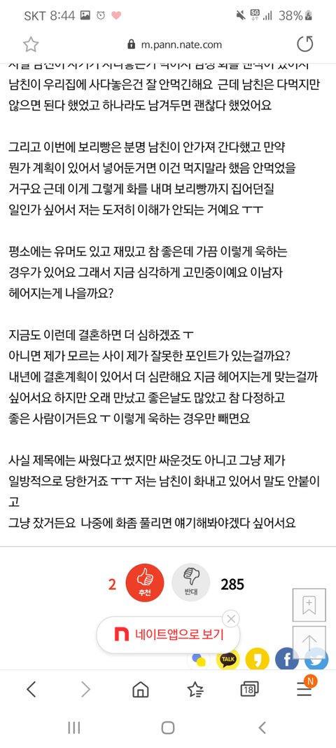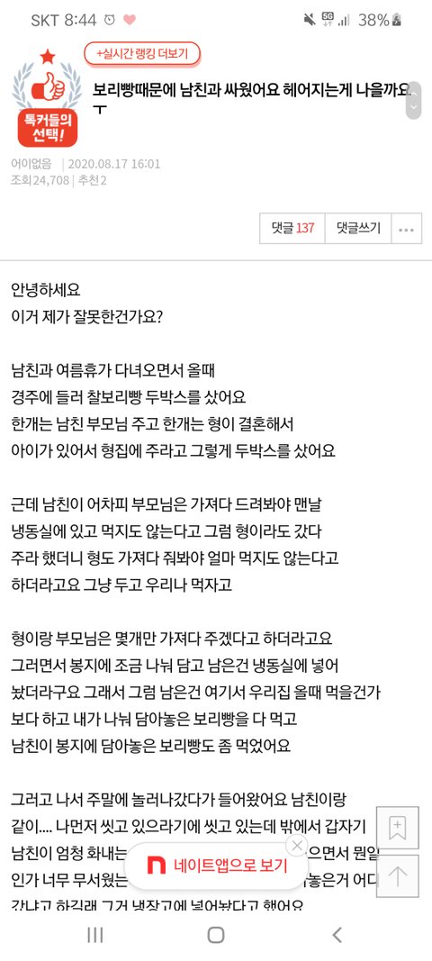 [원본지킴이] 보리빵 때문에 남친이랑 싸운 보리빵녀