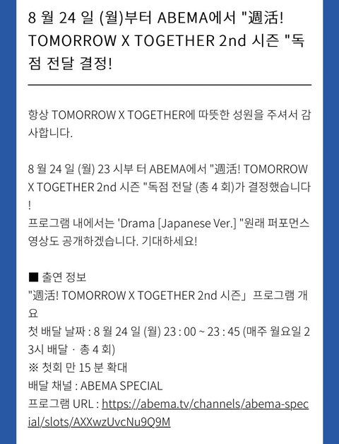 아베마tv TXT 시즌2 총4회 결정