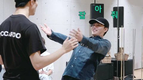 여기에서 마크랑 태일이랑 손바닥 밀치기 하다가