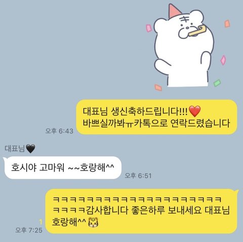 호시는 평소에 호랑이 모에화 오지는데 멤버들이랑 팬들한테 반강제 주입 시키더니 이제는 대표님까지(한성수인듯) 세뇌시킴 호랑해는 호시만의 사랑전달법임 사랑해❤️ 대신 호랑햌ㅋㅋㅋㅋㅋㅌㅋㅋㅋㅋㅋ