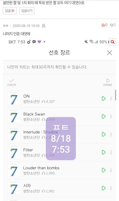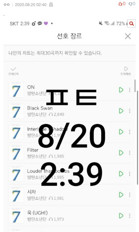 어떻게 들은 곡 스밍횟수 모든게 이렇게 똑같이 일치할수있냐