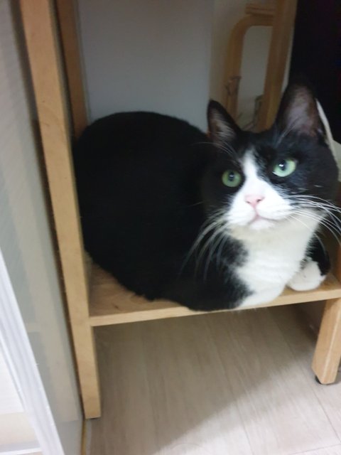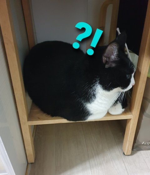 츄르 한포 하시고 식탁곁 으르신의 새 보금자리(이건 단연코!!! 으르신의 의지임을 밝히는 바 입니다!!!)에 자리잡으시고는 집사와 엉아의 식사가 끝나기를 기다려주시는 으르신~^^♡