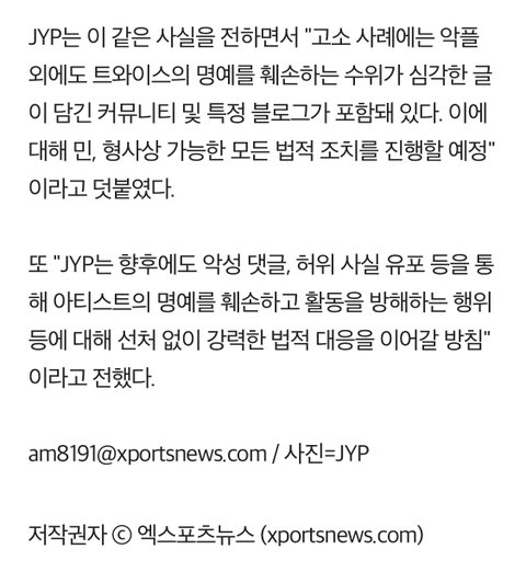 계속 고소 하는 중이고 판에도 피디엪 많이 따였으니 다들 인신공격은 멈춰주길 판년들 좀 쫄리겠네 여기서도 많이 피디엪 따서 보낸걸로 아는데 제왑고소기간이라고 계속 말해도 아주 악플이란 악플은 다 달았던 판 악플러들 경찰서 팬미팅 잘 하고 오셈