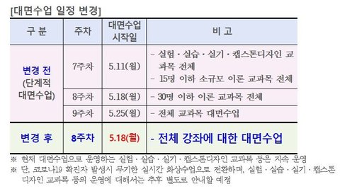 그 의견들을 반영하여 5월 8일로 대면강의하