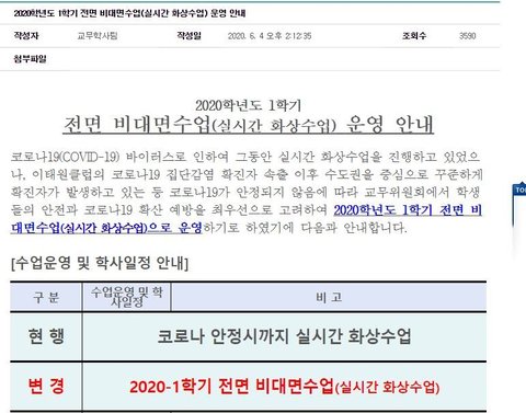 이때 다른 대학들은 2주 밀고 확산 위험될 때 바로 비대면으로 했음.