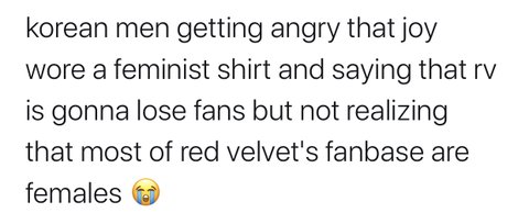 한국남자들 조이가 페미 티셔츠 입었다고 빡쳐서 레드벨벳이 팬 잃을거라고 말하는 중 레드벨벳 팬베이스가 여잔지도 모르고ㅠㅠㅠㅠ