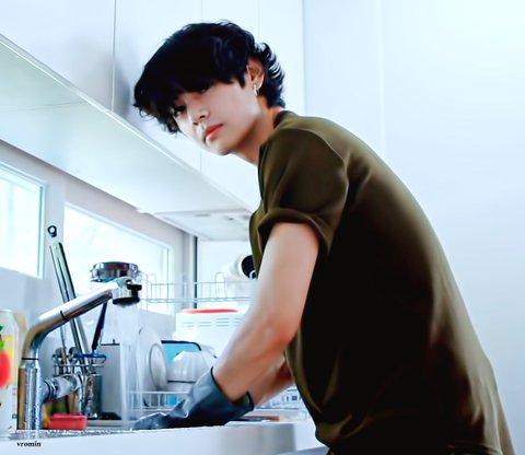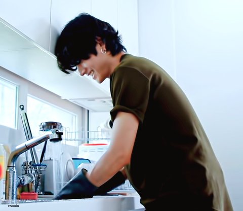 설거지하다가 갑자기 왜 카메라보고 저렇게 웃냐고