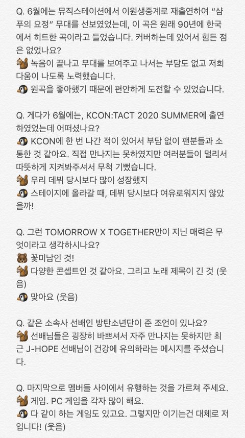 멤별인터뷰는 댓글창에