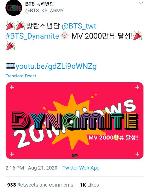 다이너마잍트 뮤비 2000만뷰 달성!❤