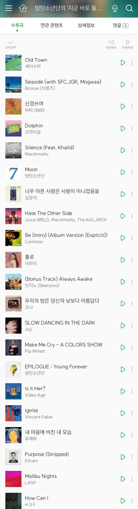 멜롱 애들이 지금 들려주고 싶은 노래 리스트