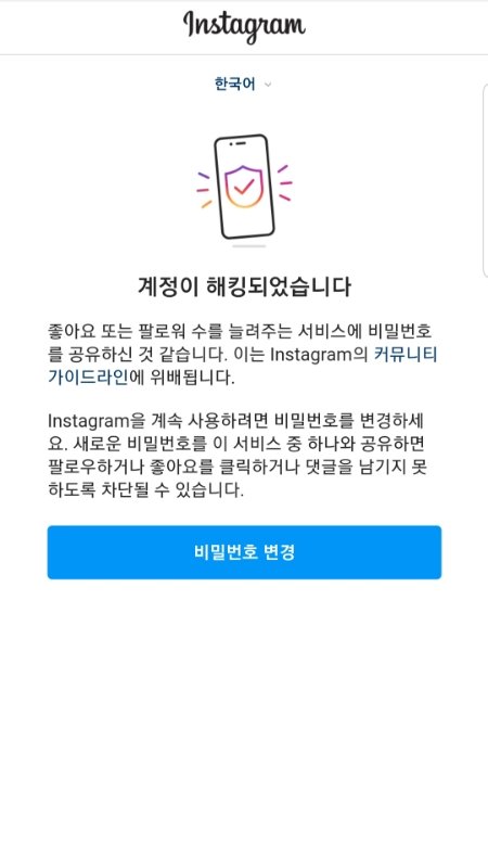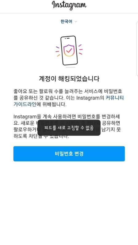 갑자기 인스타 계정이 해킹되었다고 뜸ㅅㅂ