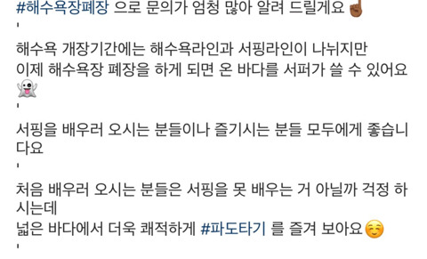 해수욕장 폐장 시국, 어느 서핑샵의 공지사항
