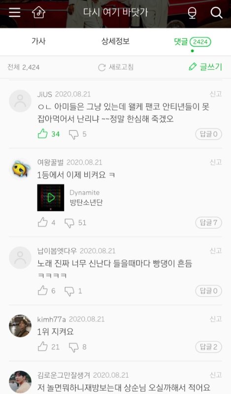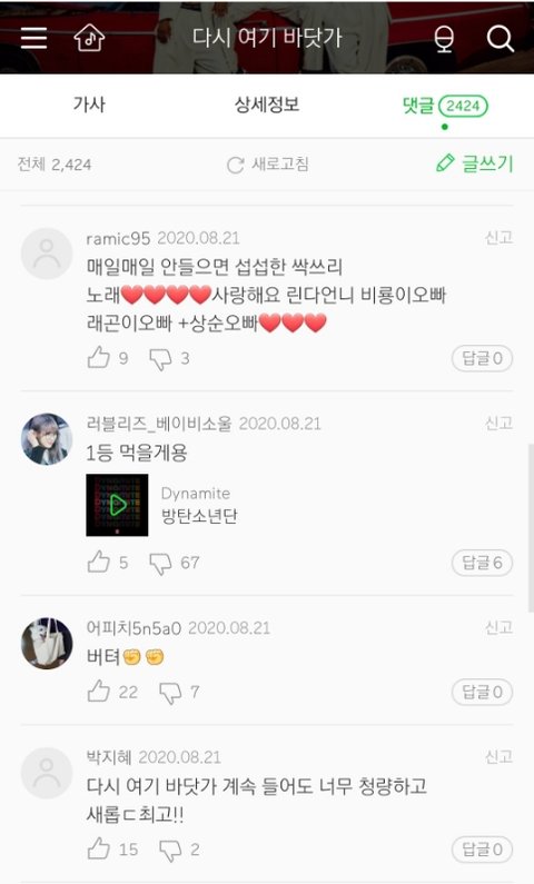 싹스리 노래의 댓글중 일부분 일부로 특정 팬덤을 욕먹이려고 약올리는 거임..