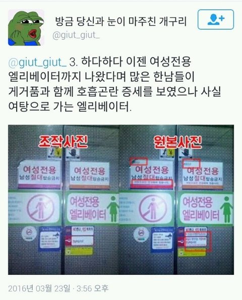 ㅋㅋ 남성분들 조용하네요. 애초에 여대 라는 근거 조차 없이 여대 이미지 내리 까려고 여자인척 “여대” 라고 올려서 여자들이 즈그 남성들마냥 불법촬영 소비하는것처럼 주작질 하다 걸렸네 ㅋㅋ cctv가 200x년도에서 2020년도로 갑자기 넘어가고 같은 장소인데 바닥모양 바뀜, 캠 종류 바뀜 등등 ㅋㅋ 출저도 디씨,일베 ㅋㅋ 주작 없음 여혐 못하죠? ㅋㅋ