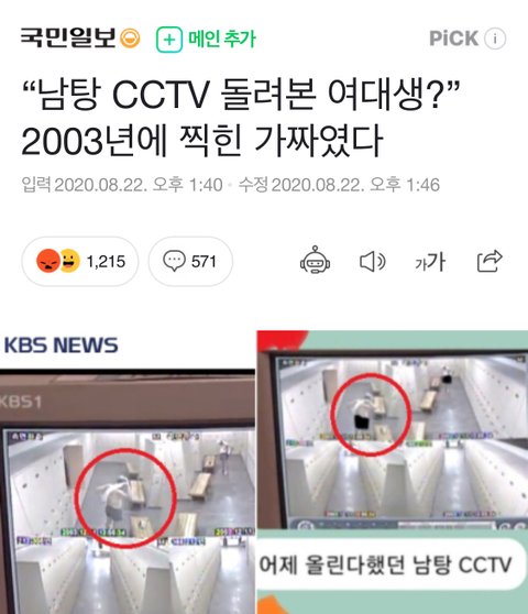 여대 남탕 cctv 주작이라고 기사 뜸 ㅋㅋ