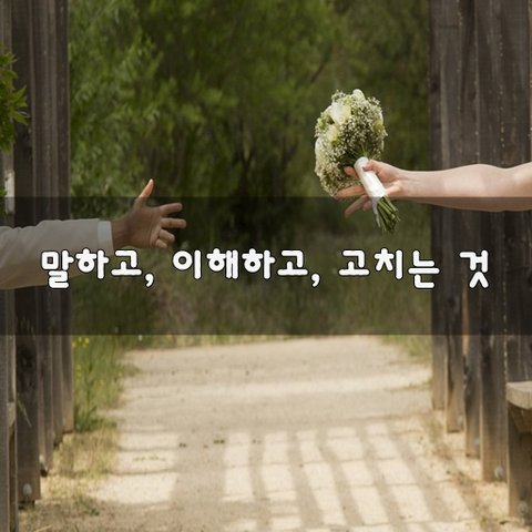 ♥ 말하고, 이해하고, 고치는 것 ♥ 연인이 길을 걷고 있어.같은 곳을 보면서 같은 곳을 향해 손을 마주 잡은 채한 발 한 발 내딛고 있어. 그 남자는 생각해.'빨리 걸어서 다 도착한 다음에 쉬어야지,근데 왜 이렇게 천천히 걷는거야,답답해.' 그 여자는 생각해. '쉬어가고 싶은데 왜 이렇게빨리 걷는거지,힘들어. 겉으로 볼 땐 행복해 보이지만마음은 이렇게나 많이 다른거야. 서로의 속마음을 얘기하지 않고계속해서 걷는다면, 남자는 답답해서 손을 놓을 테고여자는 힘이 들어 손을 놓겠지. 서로의 속마음을 얘기한다 하더라도이해하지 못한다면,결과는 똑같아질 거야. 말하고, 이해하고, 고치는 것.사랑에서 그것보다 중요한 건 없어. - 사랑할 때 알아야할 것들 中 -