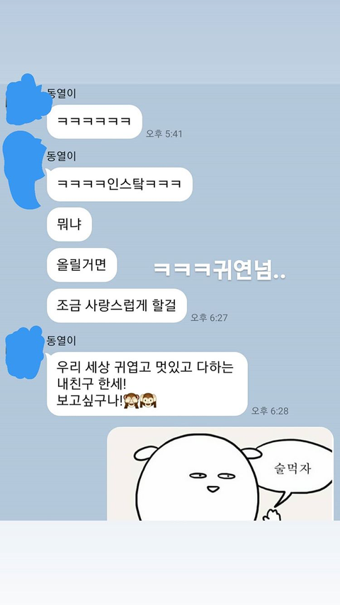 ㅇㅌ션 ㄷ열님이 뭔가 딱딱했던 한세 마음 말랑말랑하게 풀어주신 것 같아서 다행이다..토니들도 뭔가 한세한테 연락해서 세세 마음 말랑말랑하게 해줬을 것 같여ㅠ 특히 숩이 뭔가 횽 괜찮아요..?? 하면서 했을 것 같은디..마음이 한 시름 놓인다..