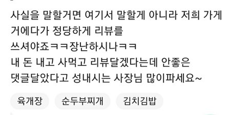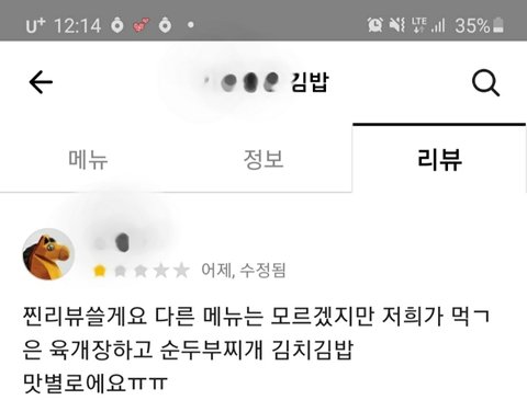 그래서 리류를 다른메뉴는 모르겠지만 제가 먹은건 별로에요 ㅠ라고 달았는데 사장님이