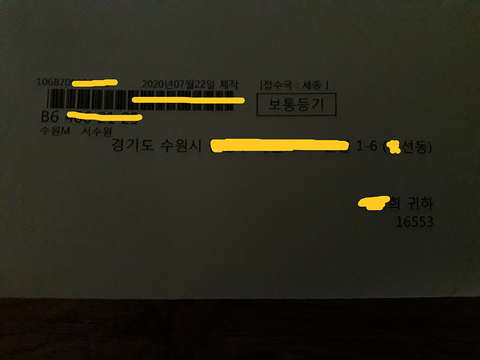 너무나 황당했습니다.. 등기를 보낼 때 수취인에 대한 정보를 적지 않고 보내다니요..