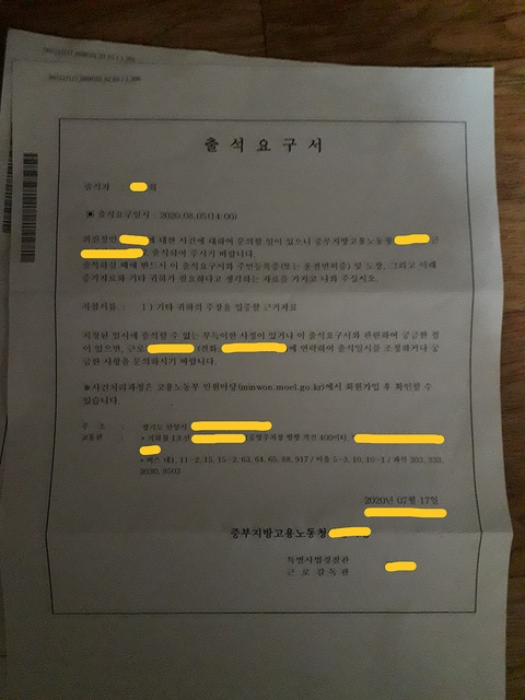 저 스스로도 제 상황이 이해가 안되었습니다. 노동부에 진정서를 제출하고, 담당자 배정도 몰랐으며, 담당자에게 연락조차 받은적이 없고, 조사조차 받은적이 없었고, 제가 출석요구서를 받아내야 했던 상황과, 담당자배정안내문자나 등기발송안내문자도 받지 못했으며, 등기조차 늦게 받았으며, 등기에 주소와 연락처도 제대로 기재하지 않았던 상황이 너무나 황당했어요... 제가 지금 무슨 일을 겪고 있는건지...