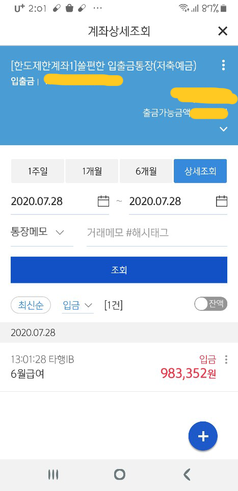 7/9일 회사측에서 계좌번호를 모른다면서 알려달라고 카톡이 왔었고, 전화도 왔는데 저는 너무 무섭고 두려워서 피했습니다. 그런데, 여기서.. 계좌번호를 모른다는 것은 말이 되질 않습니다. 지난번 글에 카톡내용에 계좌번호도 적어서 보냈었고, 월급도 2번이나 입금한 적이 있었습니다. 요즘은 모바일로 보내면 최신기록에 보낸 계좌이체 기록이 뜹니다. 근무시간대에 은행어플로 보냈왔었으며, 제은행어플기록을 확인해보니 저는 작년도 기록까지 전부 뜨더군요..
