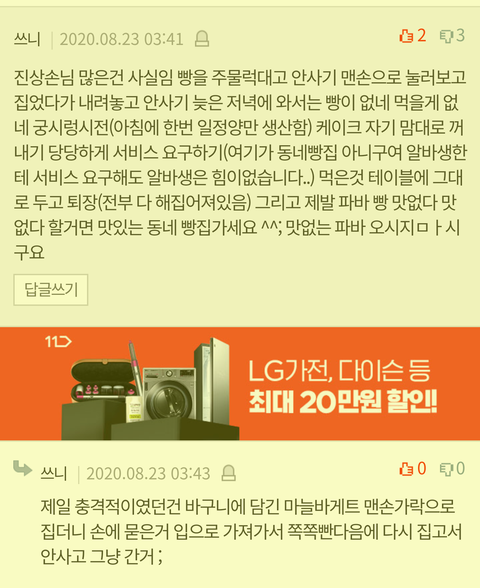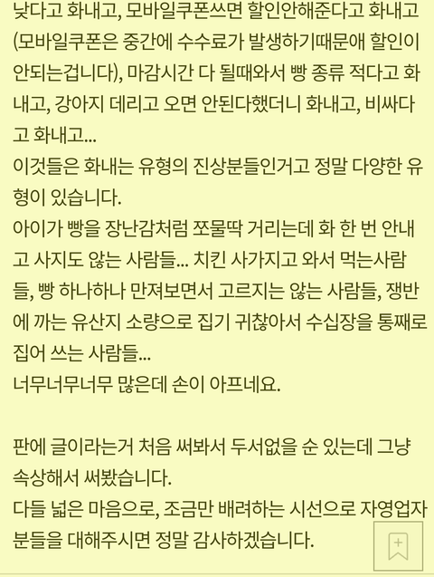 손님을 거지, 진상으로 표현하고 동네빵집가라던 그분 글 지웠네요?