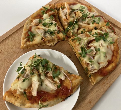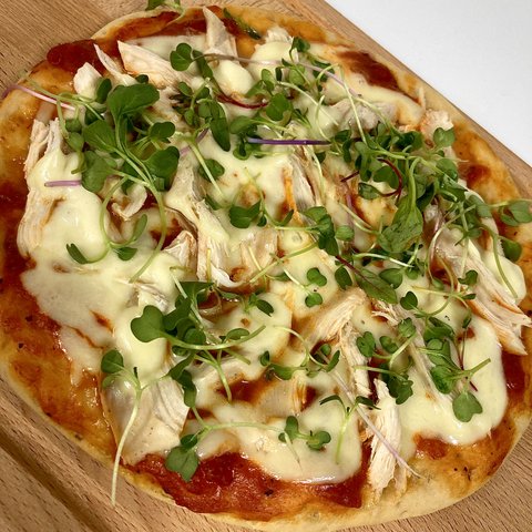 이건 며칠 전에 만든 통밀도우 닭가슴살 피자인데