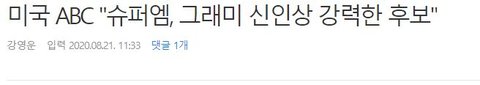 미국 ABC 슈퍼엠, 그래미 신인상 강력한 후보
