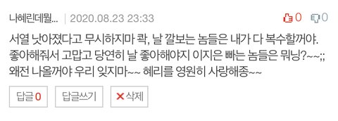 근데 정말 너네들이 엄청 많은 관심을 줘서 댓글 하나하나 다 보고 악플 보이면 반대 박고