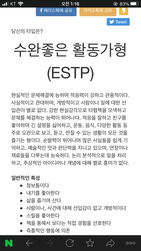 맨날 estp아니면 istp 바께 안 나오네