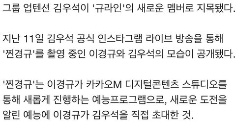 개인적으로 좀 의외(?) 였던 규라인 멤버 김우석ㅋㅋ
