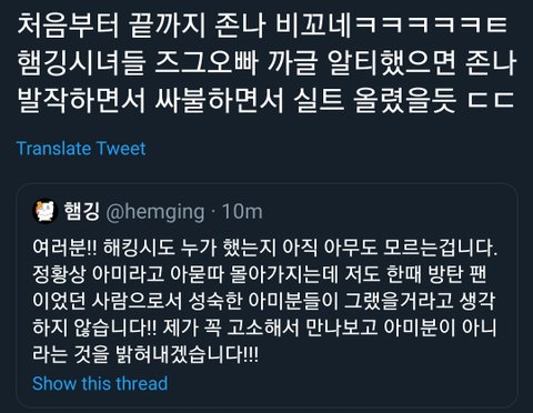 3. 아미들이 햄깅이 방탄 까글 (...) 썼다며 신상 털기 시전