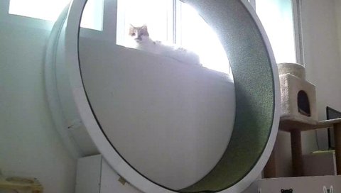 창가에 올라가는걸 좋아해서 캣휠을 창가로 옮겼음.