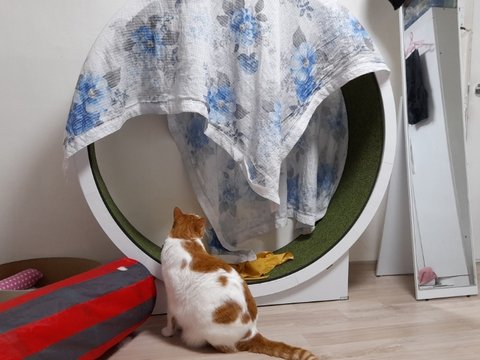 도칠이가 캣휠에 걸린 저 이불을 엄청 좋아함.