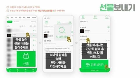 ✔보낼 친구를 찾기 어렵다면?! 멜론 닉네임 "방탄소년단음원선물" 으로 보내기