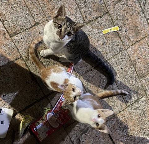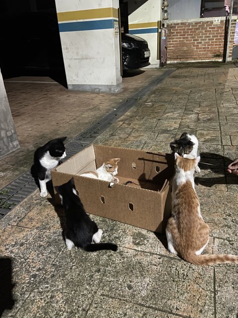 성묘들은 알아서 피할 수도 있겠지만 아기 고양이는 걱정이 되네요. 잠시 임보하시는 거면 준비물 많이 필요 없어요. 박스 구해서 거기에 고양이 모래 사서 부어서 화장실로 쓰게 하시고 집에 있는 그릇이나 일회용 용기를 밥그릇과 물그릇으로 쓰시면 되요. 그나저나 애기들을 잘 돌봐주셨는지 모두 다 깨끗하고 예쁘네요. 초보 캣맘님 힘내세요. 화이팅!