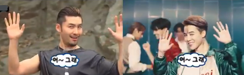 방탄 뭔가 팀내 유행어나 제스쳐 같은거 꽂히면 되게 주구장창 하는 경향이 있는거 같더만