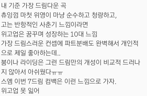 지금 드림에게는 꿈꾸며 성장하는 위고업같은 청량 컨셉이 더 어울릴거같음....!!