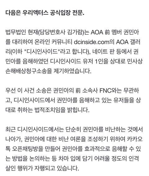 권민아 소속사에서 판에 글쓴사람 소송제기했대