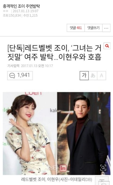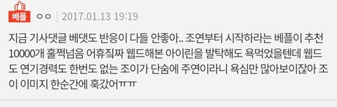 조이 연기 한다고 욕 안먹었다는건 넘 기억조작
