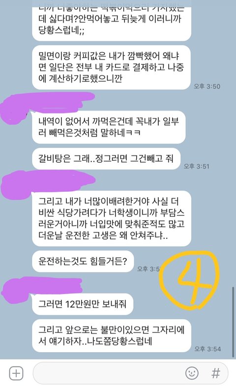 그랬더니 나이 먹을대로 먹은 어른들이 유치하게 돈 몇푼 가지고 싸우는게 웃기지 않냐면서 자꾸 어물쩡 넘어가려고 하길래 그냥 전화 끊고 지금까지 잠수타고 있어요