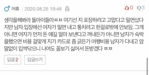 해보려고 했다는 댓글이 있던데 글 안읽으세요? 평소 데이트할때도 이런식이였다구여.,. 지가 훨씬 더 많이 처먹구 돈은 반띵 ㅜㅜ 따지고보면 제가 데이트비용도 늘 더 낸거라구여ㅠㅜㅜ