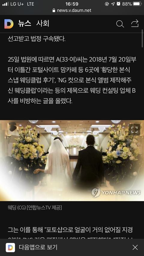 이 사건 기억나요 골**웨딩클럽 사건 당사자도 아닌 누나가(전 j***기자였음)웨딩업체와 사진을 꼬투리 잡아가며 괴롭혔고 저 사장님이 잘못한것도 아닌데 하도 여자가 보통 아니게 나오니 신혼부부 생각해서 저 동생부부가 결혼 후 외국에 있어서 비행기값에 새로 촬영비며 사장님이 부담하고 새로 촬영 등 요구 다 들어주고 이후 2년정도 지난 후 그동안 모은돈에 대출 받아 웨딩업체 리뉴얼 오픈하자 마자 다시 저 누나가 불만제기 하고 각종 포털에 이름 전/후 업체 이름 다 까발리고 실제 앨범에는 안실은 b급 사진을 올려서 업체는 몇달만에 폭망하고 건강까지 잃고, 오죽하면 안타까워 직원들이 인터넷 찾아가며 허위 기사 등 증거될만한 내용 만들어서 고소에 도움되라고 자료주고 1차 고소에는 저 누나가 불리하자 사장님한테 착한척 하며 문자 보내다가 다시 본인이 유리해지자 돌변하며 왕싸가지로 문자 보냈던거 기억나네요 보면서 우리 남편도 자영업 하는데 살면서 저런 고객은 안만났으면 했던 기억이 있습니다. 제대로 벌 받았으면 좋겠네요
