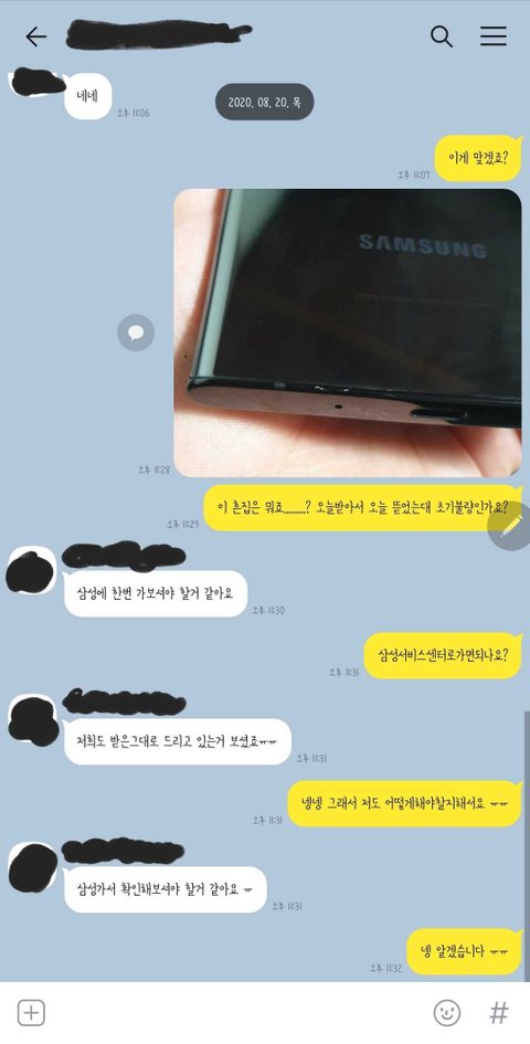 2020-08-22 09:30분경 센터에 방문하였고 휴대폰 파손부위랑 대리점과카톡하였던 사진을 보여드렸고 엔지니어님은 불량판정서는 발급 어렵다고합니다.해당 답변을 받고 고객센터로 문의하였으나 모든 권한은 센터에있어서 도와드릴수있는 방법이 없고 센터홈페이지 문의글을 작성하여도 최선의방법은 무상수리만 가능하다고합니다.당장 새제품을 분리해서 수리하는게 걸리면 추후 방문해도 무상수리는 가능하나 다른손상이있을경우 이마저도 안된다고하네요.제가 지속 제조사측 제조과정에서 해당 손상이 발생될수없다라는 증빙자료를 요구하더라도 안된다고합니다.