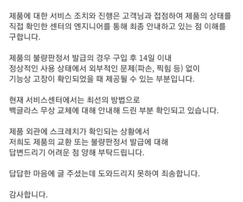 제품의 불량판정서 발급의 경우 구입 후 14일 이내정상적인 사용 상태에서 외부적인 문제(파손, 찍힘 등) 없이기능상 고장이 확인되었을 때 제공될 수 있는 부분입니다.