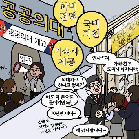 위의 포스터를 보면 제 2의 조민이 언제든지 나올 수 있고 소위 있는 집 자식들의 등용문이 될 것입니다. 공부 잘해야 하는 전문직이 아닌, 금수저들이 의사 되러 가는 도구로 전락하겠죠. 현재 전국에 올해 국가고시를 치를 의대생 중 92프로가 시험 포기를 한 가운데 조민은 의사국가고시를 보겠다고 했다고 합니다.