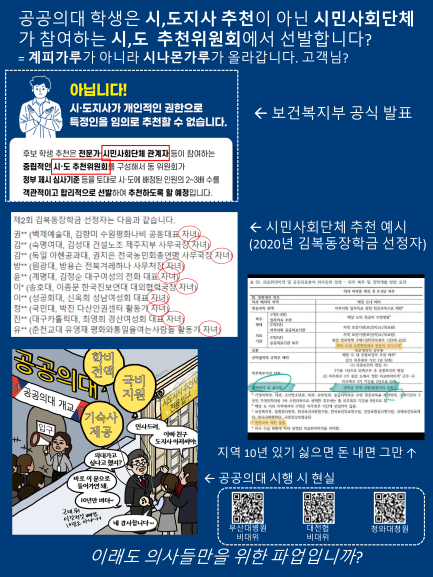현재 공공의대는 전문가 집단인 의사협회와 논의 한 번 없이 진행된 정부의 일방정 행정의 결과입니다. 의대 수련에 필수적인 부속병원도 없으며 신입생 선발 기준과 의무 복무기간도 논란이 되고 있습니다. 서남의대 같은 부실 의대 실패 사례를 막기 위해서는 의사들과의 전면 재논의가 필요합니다.
