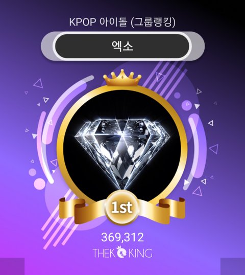 덕킹 앱에서 8월달 그룹랭킹 엑소 1등