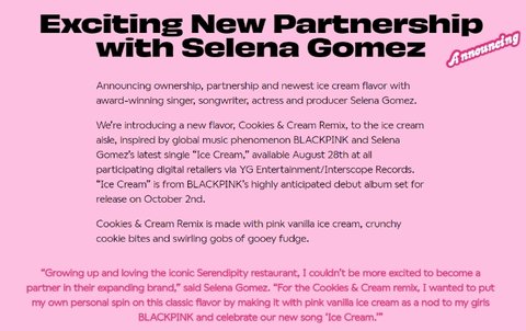 세렌디피티 라는 브랜드랑 셀레나 고메즈랑 콜라보해서