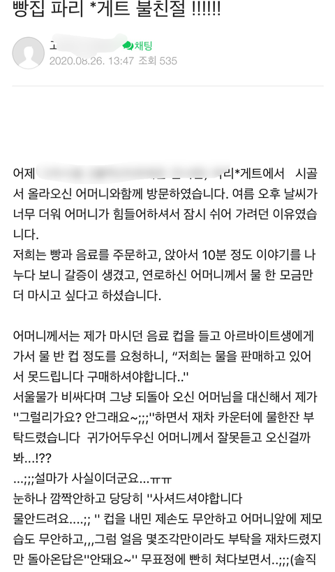 물 안주는 빵집 프랜차이즈 어떻게 생각하나요?